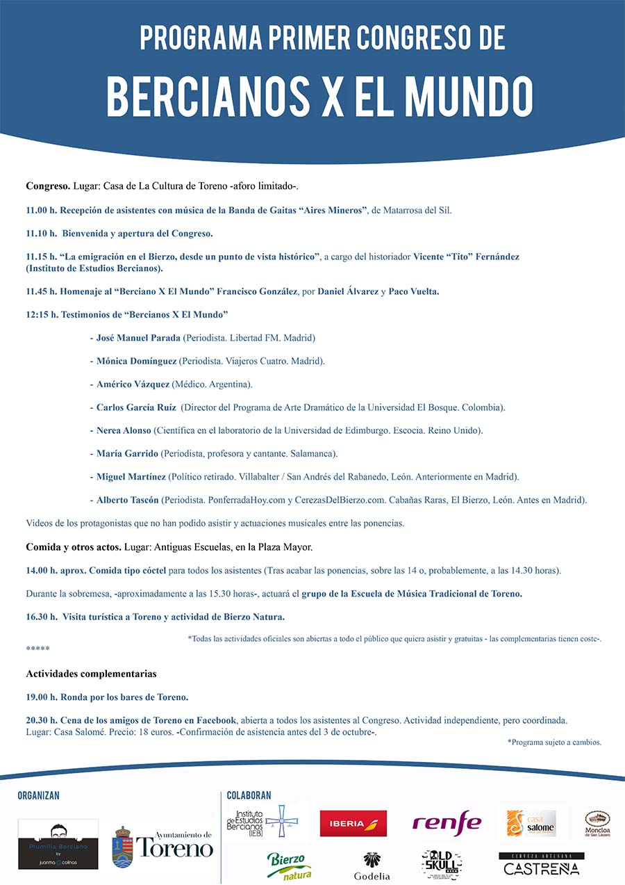 Se presenta el programa definitivo del Primer Congreso de Bercianos X El Mundo