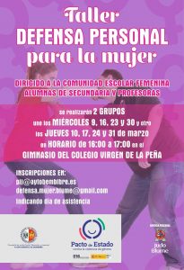 Por otro lado, desde la concejalía se vienen desarrollando actividades durante todo el año como es el ‘Taller de defensa personal’ destinado a mujeres, en el Pabellón Municipal. También, en los centros escolares, se desarrolla estos talleres destinado a las jóvenes y profesorado.